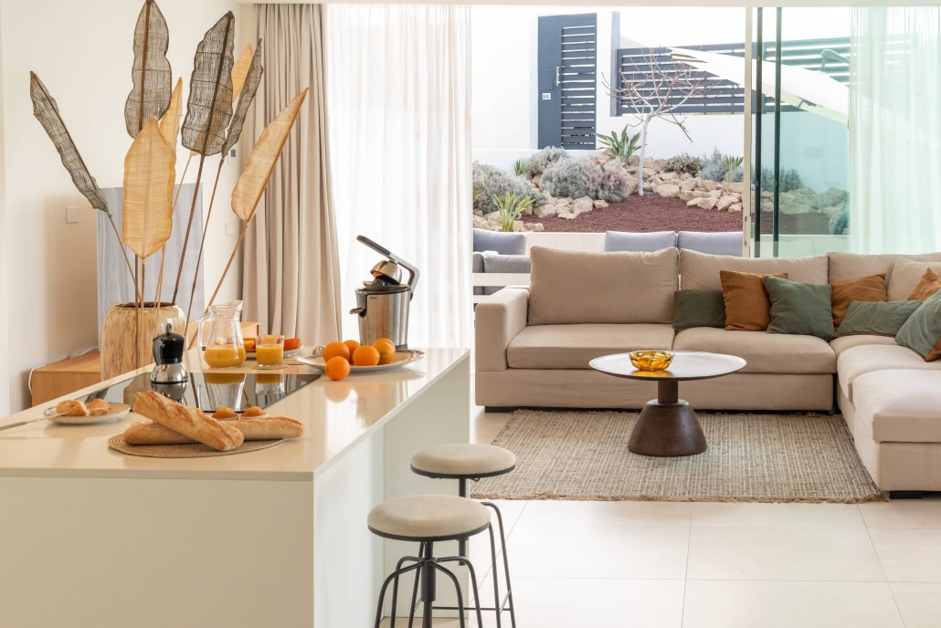 Disfruta de terrazas privadas con vistas espectaculares y piscina privada climatizada, perfecta para relajarte bajo el sol. Nuestras villas son ideales para familias, parejas o grupos que buscan tranquilidad, espacio y unas vacaciones exclusivas en un entorno privilegiado.