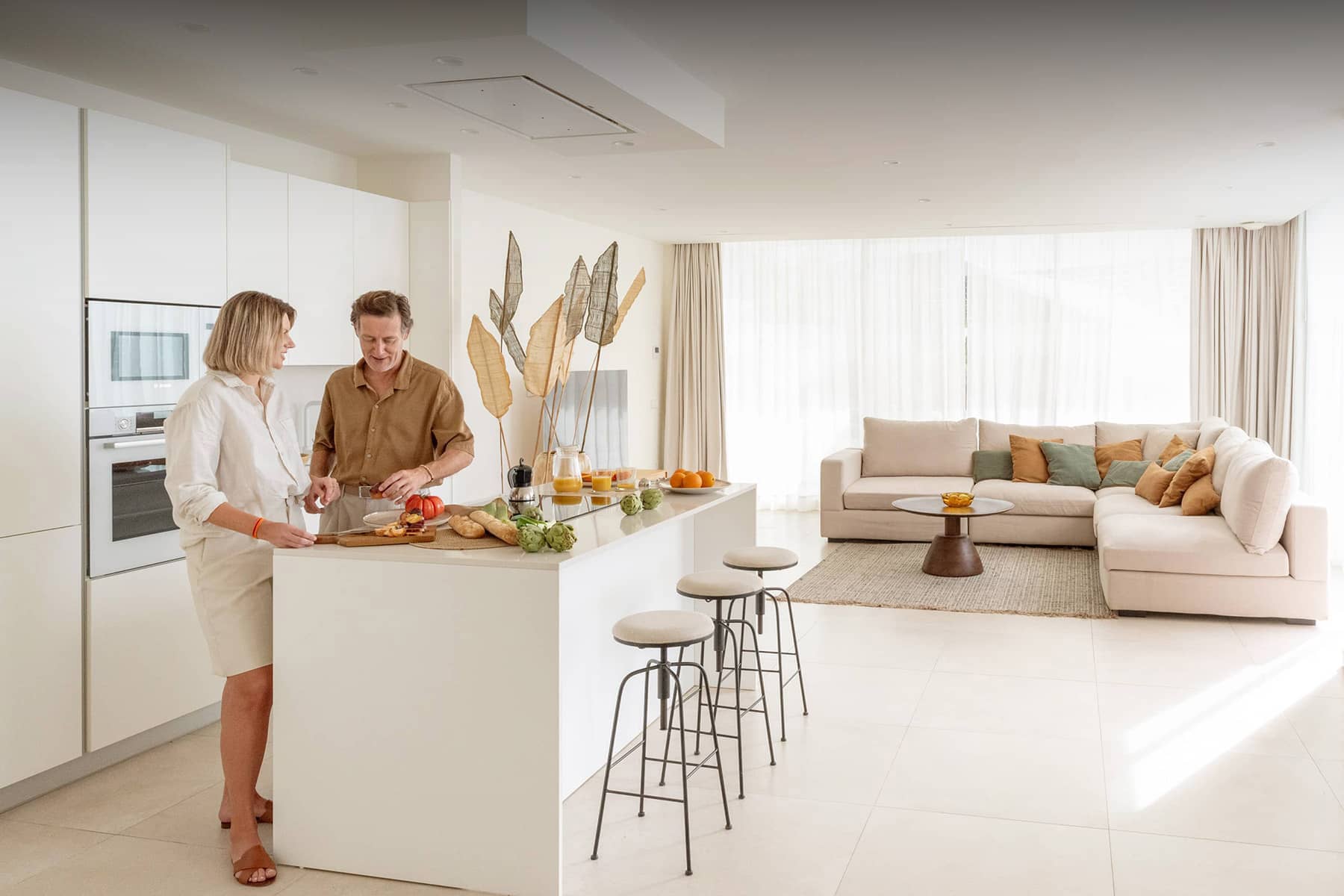 Villa de 300 metros distribuidos en tres plantas sobre una parcela de 500 metros. Dispone de tres amplios dormitorios con baño en-suite y amplio ascensor que facilita el acceso a todos los niveles. La sala de estar es espaciosa y luminosa, y conecta con una cocina que dispone de electrodomésticos modernos y acabados de alta calidad.